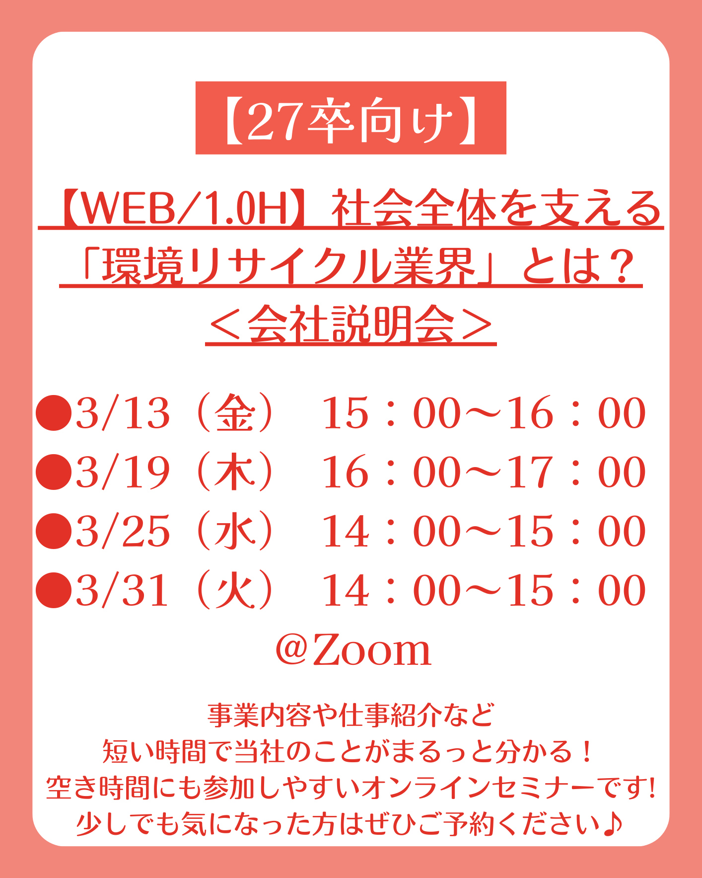 ■【WEB/1.0H】社会全体を支える「環境リサイクル業界」とは?<会社説明会>