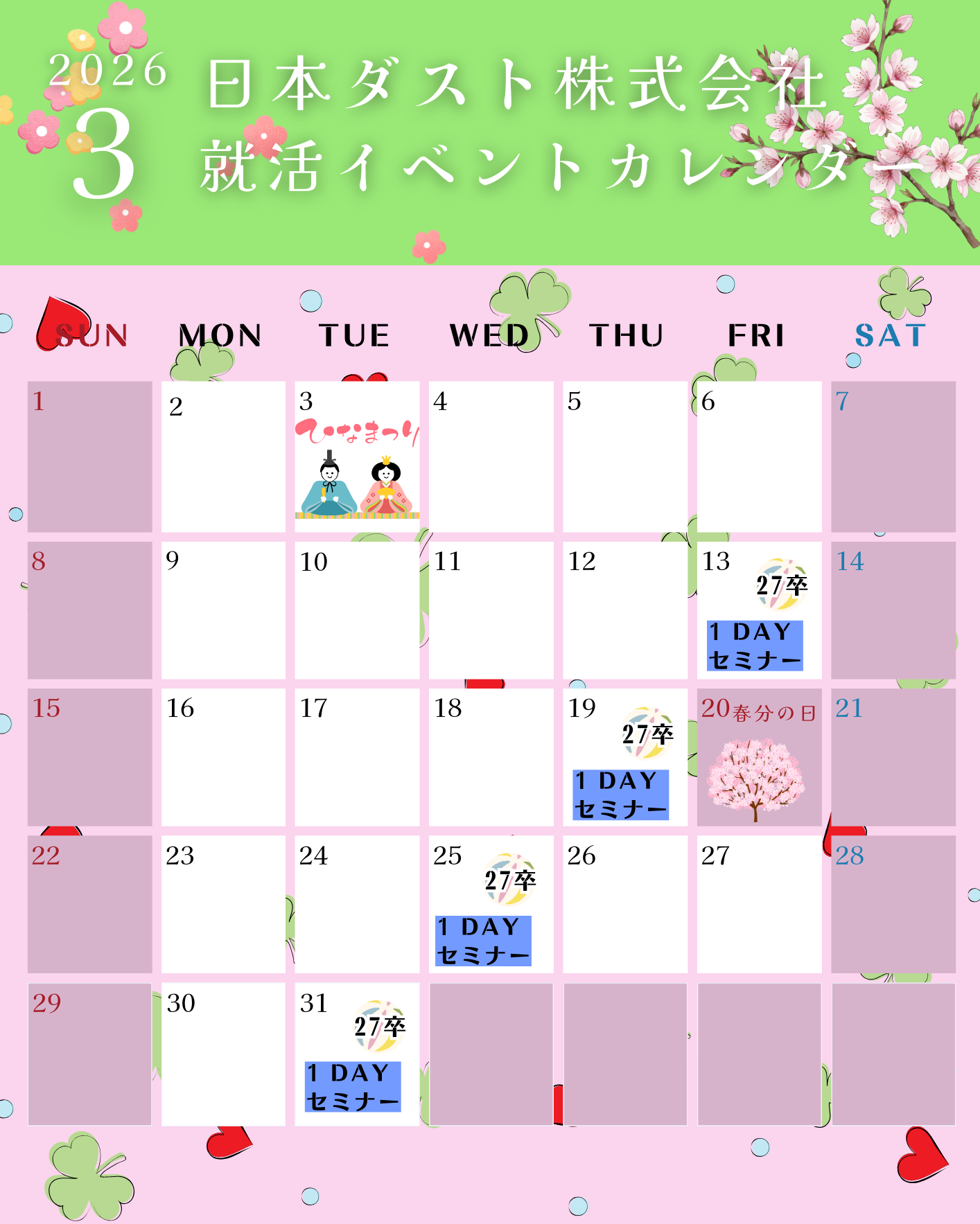 3月に開催される日本ダストの27卒向け就活イベントをご紹介します!