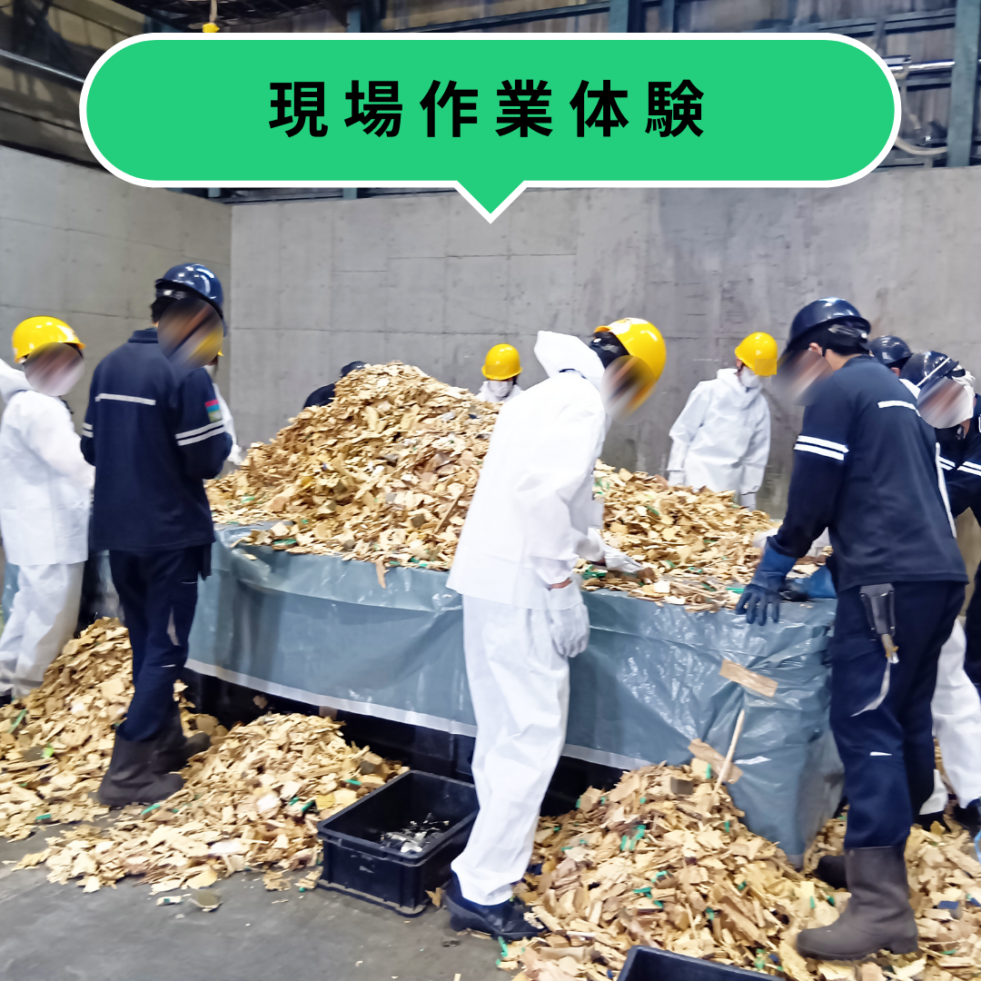 続いては、木くずの山から金属くずを見つける現場作業に挑戦!