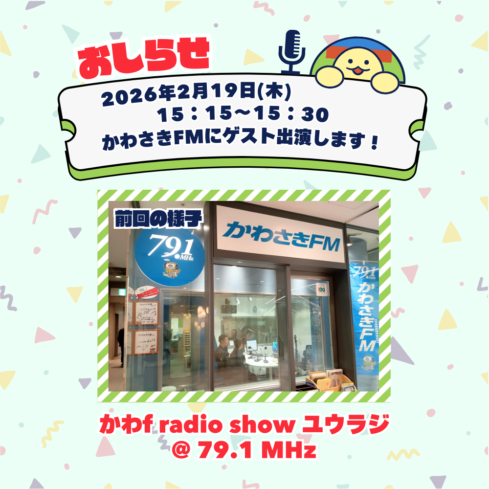 かわさきFMの番組「かわF RADIO SHOW ユウラジ」に、ゲスト出演させていただきます🎤✨